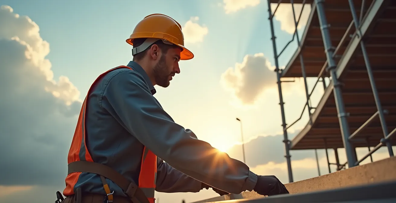 Quel est le lien avec le casque ? Même sur un échafaudage parfaitement amarré et sécurisé, le risque de chute d’objets demeure. Un outil qui glisse, un petit débris qui tombe de l’étage supérieur… Ces incidents sont fréquents. C’est précisément pour parer à ce risque résiduel que le port du casque, équipé d’une jugulaire 4 points pour garantir son maintien, est non-négociable pour toute personne travaillant sur ou circulant à proximité d’un échafaudage. La protection est un système de couches successives : la stabilité de la structure est la première, le casque est la dernière ligne de défense personnelle.
